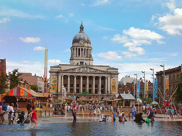Nottingham City Centre with the Town Hall in the background